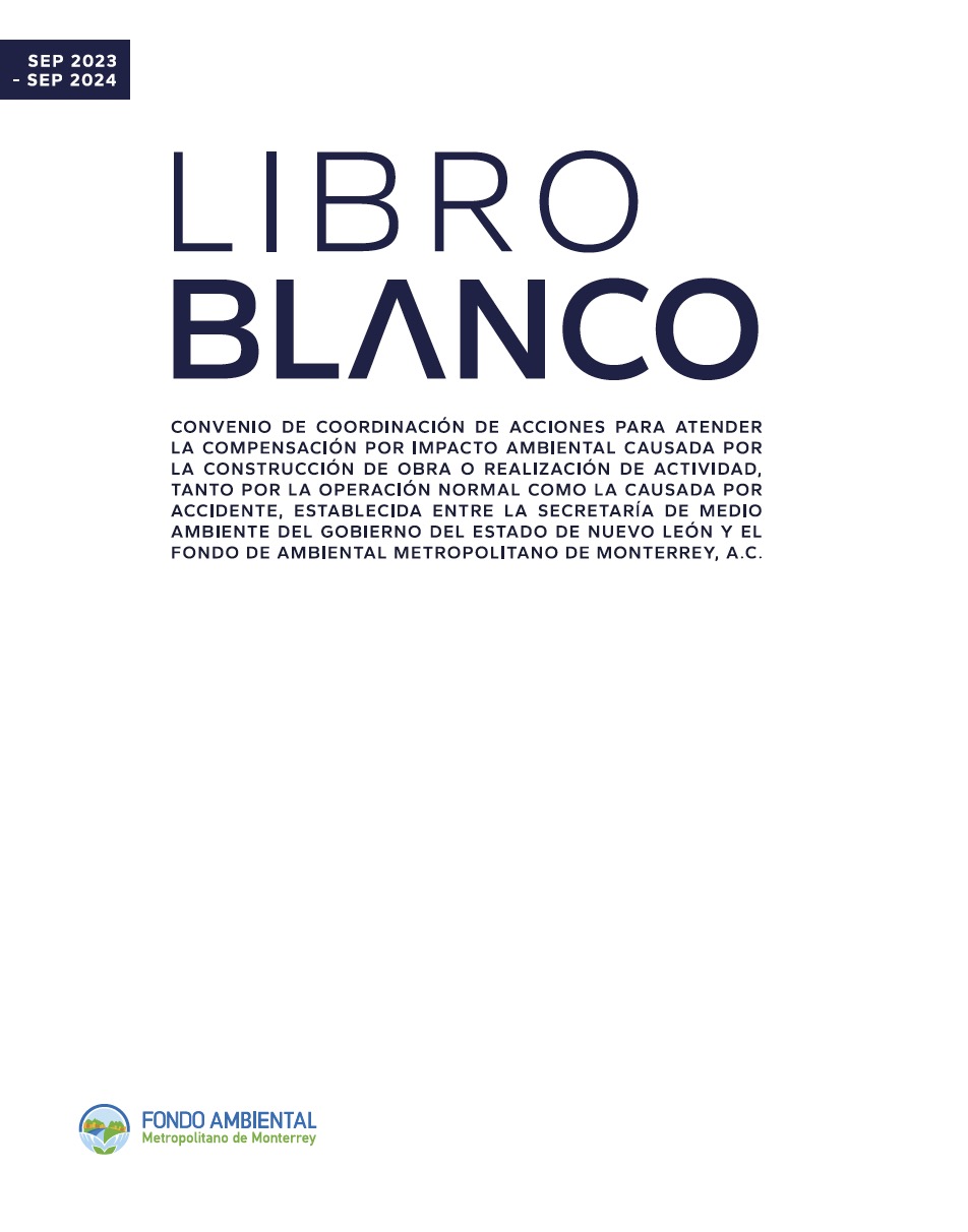 El Fondo Ambiental Metropolitano de Monterrey, de manera proactiva, ha elaborado durante los últimos cuatro años sus Libros Blancos, documentos que transparentan el ejercicio de los recursos de compensación ambiental en el marco del convenio de colaboración con la Secretaría de Medio Ambiente. A través de ellos, el Fondo rinde cuentas sobre los proyectos ejecutados, los resultados alcanzados y el uso responsable de los recursos públicos destinados a la restauración y conservación ambiental.